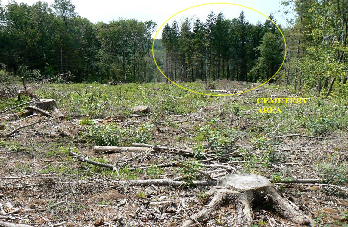cemetery a year later, March 2009. Remaining edge trees have died from